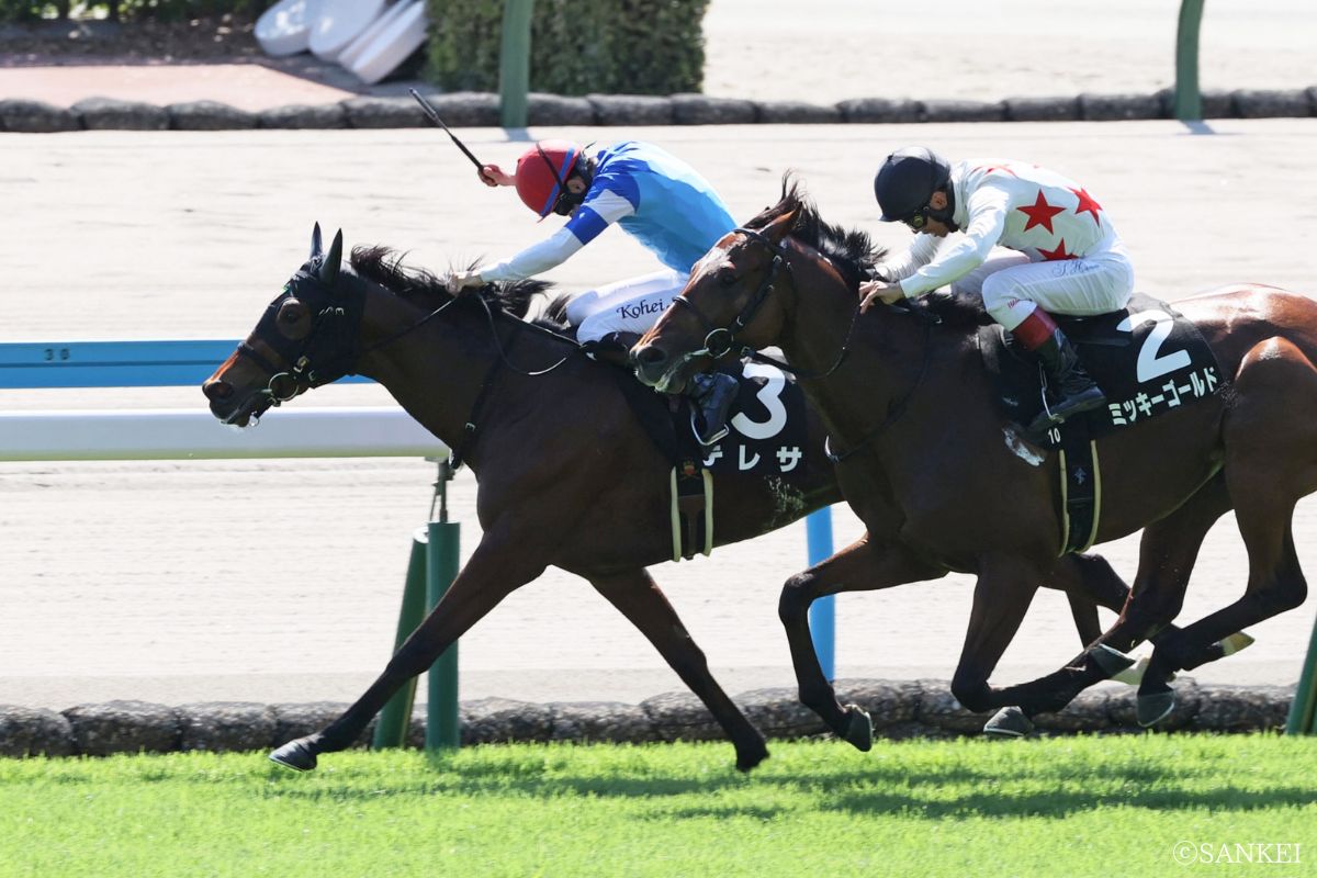 テレサはアドマイヤマーズ産駒ではありますが阪神1800mを勝っているようにエンブロイダリーよりは距離の融通は効きそうであるので本命にしました。